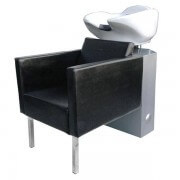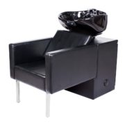 Grace B1036 Backwash Shampoo Unit made by Global salon spa furniture Upholstered seat and back Plastic looped Q style arms Standard in Leatherite Tilting mechanism bowl comes with Faucet and drain Made in Canada