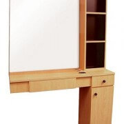 Beautifully designed station with dark wood finish, chrome fixtures, half-moon shelf, and metal footrest bar. Designed to be complimented with our CC-2753-dark Styling Cabinet.