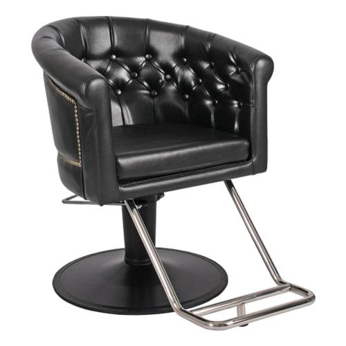 Eden Styling chair Antique looking styling chair. Comes with European style stainless steel hydraulic base. Tufted back with steel studs around the back. Thick seat Cushion. 27 W x 25 L