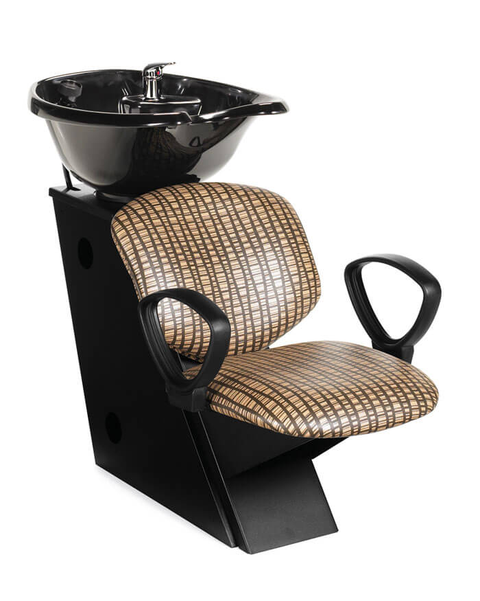 Grace B1036 Backwash Shampoo Unit made by Global salon spa furniture Upholstered seat and back Plastic looped Q style arms Standard in Leatherite Tilting mechanism bowl comes with Faucet and drain Made in Canada