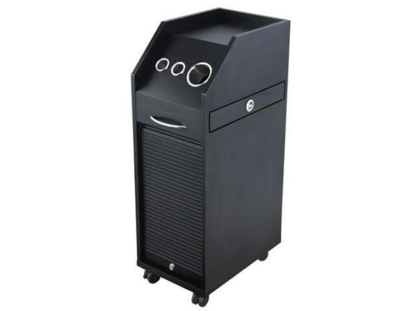 This rollabout piece has visual simplicity yet high functionality. It features a flat working surface on top, pull-out surface for extra working area, and slanted appliance holders for easy access. Inside the lockable roll door compartment, there are four separate drawers to keep supplies organized and secured throughout the work day. The rollabout has heavy duty casters that rolls easily. The ultra helpful “MOCO” storage trolley will certainly make organization seem like a piece of cake.