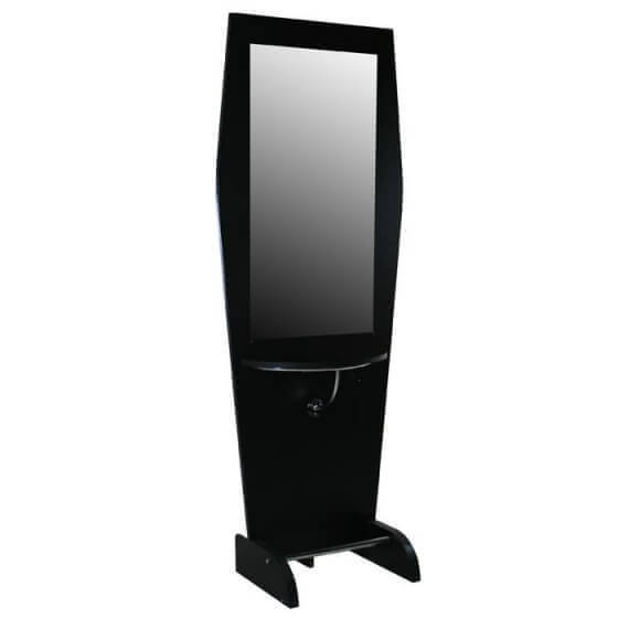Beautifully designed station with dark wood finish, chrome fixtures, half-moon shelf, and metal footrest bar. Designed to be complimented with our CC-2753-dark Styling Cabinet.